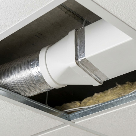 Raccord Mixte Ø 100 55x110mm pour Aérateur Extracteur | Connexion Ignifuge | Résistant à l'Humidité et aux Hautes Températures Caractéristiques du Produit : Montage facile et rapide : Raccord avec conception mâle-femelle, idéal pour une installation sans complications. Matériau ignifuge et auto-extinguible : Résistant jusqu'à 80ºC, offrant sécurité et fiabilité dans des environnements exigeants. Meilleures performances que les conduits traditionnels : La paroi intérieure lisse réduit les pertes de charge, optimisant le flux d'air. Résistant à l'humidité : Ne se détériore pas par l'humidité, garantissant des performances durables dans des environnements humides. Conception compacte et polyvalente : Avec seulement 55 mm de hauteur, il s'adapte à tout espace, idéal pour les faux plafonds. Dimensions – Largeur : 11 cm, Profondeur : 14 cm, Hauteur : 10 cm Questions Fréquentes : Qu'est-ce qu'un raccord mixte ? Un raccord mixte est un accessoire qui relie deux conduits de diamètres différents de manière sécurisée et efficace, en utilisant un design mâle-femelle. Est-il adapté aux systèmes de ventilation ? Oui, ce raccord est parfait pour les systèmes d'extraction d'air, comme les aérateurs et extracteurs, grâce à sa conception et à ses matériaux résistants. Peut-il être utilisé dans des espaces à forte humidité ? Oui, le raccord est résistant à l'humidité et ne se détériore pas, ce qui le rend fiable dans des environnements humides. Quelle est la température maximale qu'il peut supporter ? Il supporte des températures de travail allant jusqu'à 80°C sans compromettre ses performances ni sa sécurité. Est-il facile à installer ? Oui, son montage est rapide et simple grâce à l'assemblage mâle-femelle, sans avoir besoin d'outils complexes.