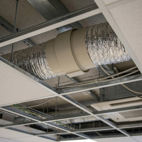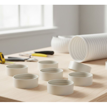 Raccord Rond Ø 100mm | Accessoire d'Extraction Ignifuge | Résistant à l'Humidité et à Haute Température | Auto-Extinguible Caractéristiques du Produit : Montage facile et rapide : Raccord avec design mâle-femelle, idéal pour une installation sans complications. Matériau ignifuge et auto-extinguible : Résistant jusqu'à 80°C, offrant sécurité et fiabilité dans des environnements exigeants. Meilleures performances que les conduits traditionnels : La paroi intérieure lisse réduit les pertes de charge, optimisant le flux d'air. Résistant à l'humidité : Ne se détériore pas à cause de l'humidité, garantissant une performance durable dans des conditions humides. Design compact et polyvalent : Avec seulement 55 mm de hauteur, il s'adapte à tout espace, idéal pour passer à travers des faux plafonds. Dimensions : Largeur : 10 cm, Profondeur : 3,6 cm, Hauteur : 10 cm Questions Fréquemment Posées : Qu'est-ce qu'un raccord mixte ? Un raccord mixte est un accessoire qui relie deux conduits de diamètres différents de manière sécurisée et efficace, avec un design mâle-femelle. Est-il adapté aux systèmes de ventilation ? Oui, ce raccord est parfait pour les systèmes d'extraction d'air, comme les aérateurs et les extracteurs, grâce à son design et ses matériaux résistants. Peut-il être utilisé dans des espaces à forte humidité ? Oui, le raccord est résistant à l'humidité et ne se détériore pas, ce qui le rend fiable dans des environnements humides. Quelle est la température maximale supportée ? Il supporte des températures de travail allant jusqu'à 80°C sans compromettre ses performances ni sa sécurité. Est-il facile à installer ? Oui, son montage est rapide et simple grâce à l'assemblage mâle-femelle, sans avoir besoin d'outils complexes.