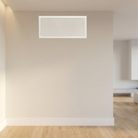 Grille d'aération métallique avec cadre 50 x 20 cm, blanche. Améliorez la circulation de l'air grâce à cette solution de ventilation professionnelle, facile à installer et durable. Idéale pour maintenir un environnement sain et confortable dans tous les espaces.