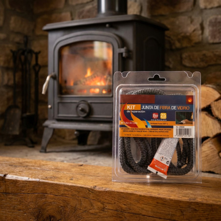 Kit de joint en fibre de verre noire (4 mm x 2,5 m) avec adhésif réfractaire pour une étanchéité parfaite des portes de poêle, de cheminée et de four. Améliore l'efficacité et la sécurité.
