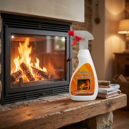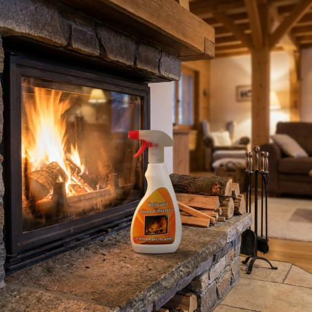 Nettoyant concentré pour vitres de cheminée en spray 500 ml. Élimine efficacement les traces de suie et de fumée, redonnant tout leur éclat à la vitre de votre cheminée ou poêle sans laisser de traces. Idéal pour un nettoyage en profondeur et durable.