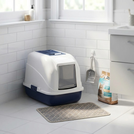 Ce bac à litière d'angle pour chat est un accessoire indispensable pour garder l'habitat de votre chat propre. Avec des mesures de 40x50x40 cm, ce produit fabriqué en Espagne garantit le confort et l'hygiène nécessaires à votre animal.