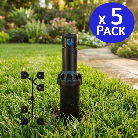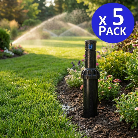 Arroseur de 19 mm (3/4") avec retour automatique en arc, portée de 5,2 à 14,3 m et angle d'arrosage réglable. Conçu pour les systèmes d'irrigation automatiques résidentiels et publics de petite et moyenne taille. Arroseur haute performance offrant la polyvalence et l'efficacité nécessaires à toute installation. Lot de 5 arroseurs.