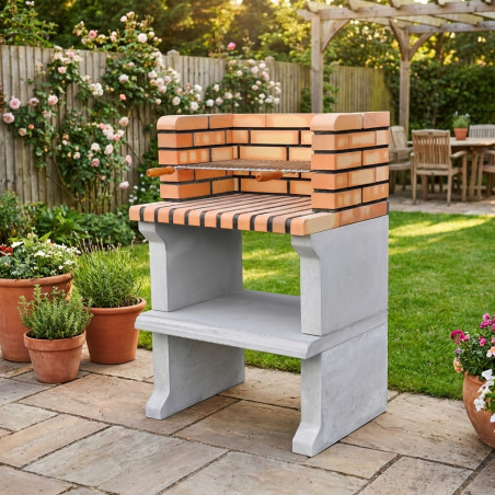 Sa construction en béton et en briques confère au barbecue Sines XL une résistance exceptionnelle aux intempéries et à une utilisation intensive. Sa hauteur de 114 cm assure un confort ergonomique optimal lors de la cuisson, évitant ainsi les postures inconfortables. La finition des matériaux facilite le nettoyage et préserve son aspect d'origine au fil du temps.