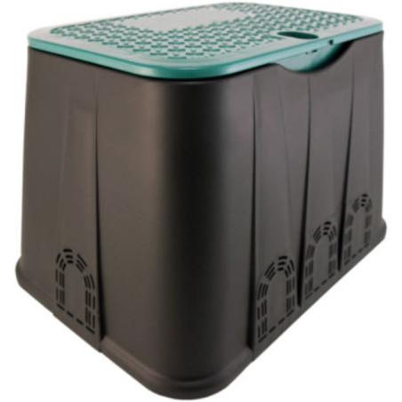 RÉSISTANT - Boîte de vannes d'irrigation de jardin 480x350x310 mm conçue pour protéger les électrovannes et les raccords d'irrigation, offrant une solution résistante, discrète et durable pour tout système d'irrigation enterré ou automatique, gardant tous les composants en sécurité et accessibles.