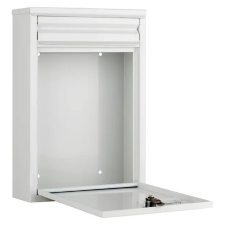 Boîte aux lettres extérieure robuste en acier blanc résistant aux intempéries, conçue pour un usage collectif. Sa serrure de haute qualité assure une sécurité maximale. Idéale pour les immeubles et les collectivités.