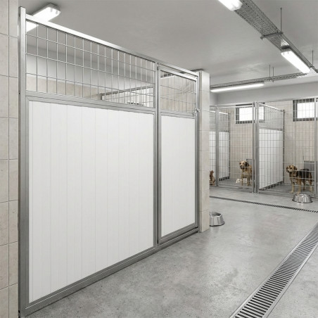 Façade mixte pour niches pour chiens 150 x 185 cm. Conçue pour offrir confort, sécurité et ventilation optimale à votre chien. Comprend une porte intégrée et des matériaux haute résistance pour une durabilité maximale.
