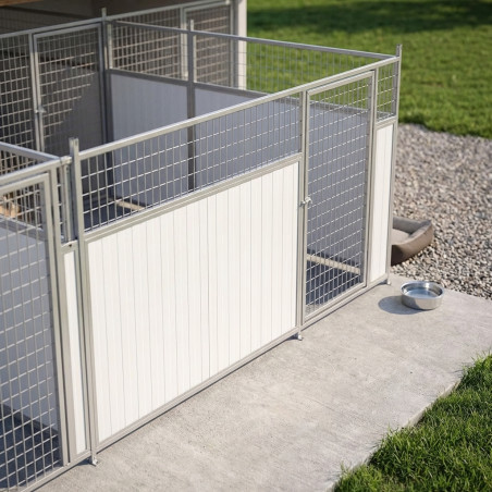 Ce panneau latéral est non seulement fonctionnel, mais il contribue également à l'harmonie visuelle de l'espace chenil. Sa finition de haute qualité garantit un nettoyage facile et un entretien minimal, vous permettant ainsi de passer plus de temps avec votre animal et moins de temps à nettoyer. C'est l'accessoire idéal pour créer un chenil sûr, hygiénique et confortable, tout en optimisant l'espace disponible dans votre jardin.