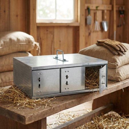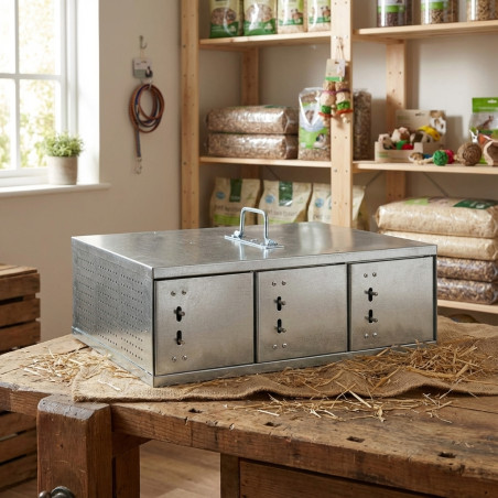 Porte-furet léger à trois compartiments, en tôle galvanisée.