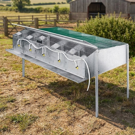 Cage idéale pour l'élevage de perdrix et autres oiseaux avec cinq départements et possibilité d'agrandissement. Mesures 204x108x105 cm. Galvanisé.