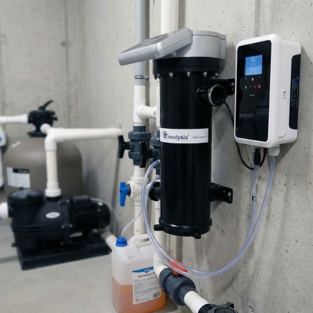 Le contrôle du pH est essentiel. Si le pH est trop élevé, le chlore produit par l'électrolyseur au sel perd une grande partie de son pouvoir désinfectant. Ce module garantit une efficacité maximale du chlore et protège ainsi le système de la piscine.