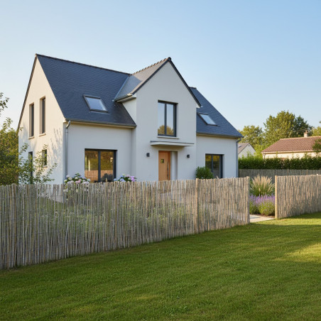 Haie en bambou naturel pour jardin de 1,5 x 5 mètres avec 85 % de dissimulation . Fabriqué avec des tiges de bambou naturel qui offrent résistance et durabilité, idéal pour les clôtures et la séparation des voisins.