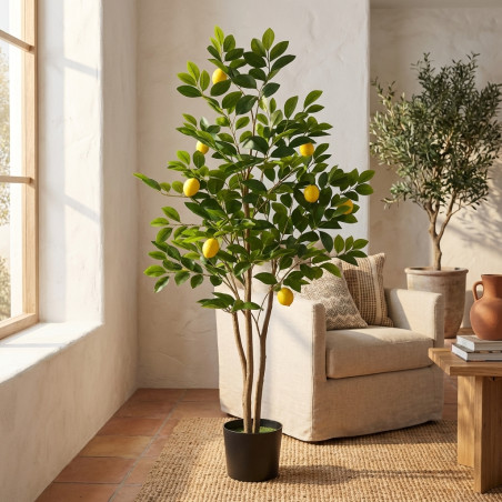Transformez n'importe quel coin de votre maison ou de votre bureau avec ce citronnier artificiel de 150 cm, éclatant de couleurs et d'un réalisme saisissant. Conçu avec soin pour reproduire la beauté d'un véritable citronnier, cet élément décoratif est la solution idéale pour ceux qui souhaitent profiter du charme de la nature sans les contraintes d'entretien. Plus besoin d'arroser, de tailler ni de vous soucier de la lumière : savourez une touche de fraîcheur méditerranéenne toute l'année.