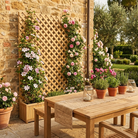 Découvrez la solution idéale pour définir, décorer et apporter une touche d'élégance naturelle à tous vos espaces grâce à notre panneau treillis en bois de haute qualité. Avec ses dimensions généreuses de 100 x 200 cm, ce panneau est non seulement fonctionnel, mais il devient également un élément de design central dans votre jardin, sur votre terrasse, votre balcon ou même à l'intérieur de votre maison.