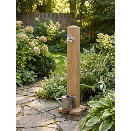 Un design effet bois naturel , alliant esthétique décorative et fonctionnalité, idéal pour ceux qui recherchent un point d'eau pratique sans sacrifier l'harmonie visuelle de leur espace extérieur.