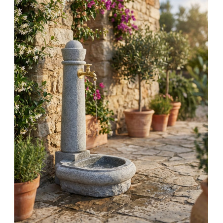 Fontaine décorative d'extérieur , idéale comme élément ornemental ou fonctionnel dans les jardins, les terrasses et les espaces de détente. Se raccorde à un tuyau de 19 mm.