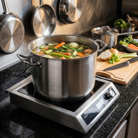 Découvrez la polyvalence et la durabilité de la cocotte Lacor 32 cm en acier inoxydable sans couvercle, modèle LA16033. Conçue pour les professionnels comme pour les passionnés de cuisine, cette cocotte est un indispensable de tout équipement culinaire. Sa construction robuste en acier inoxydable de haute qualité assure une répartition homogène de la chaleur, permettant une cuisson précise et efficace d'une grande variété de plats. Avec sa généreuse capacité de 14,5 litres, elle est parfaite pour cuisiner de grandes quantités, idéale pour les familles nombreuses, les réceptions ou la préparation de repas à l'avance. Sans couvercle, elle est particulièrement pratique pour réduire les sauces, faire sauter, revenir ou confire, offrant un contrôle total sur la cuisson. La surface lisse et non poreuse de l'acier inoxydable garantit un nettoyage rapide et facile, et elle passe au lave-vaisselle, vous faisant gagner du temps et de l'énergie en cuisine.