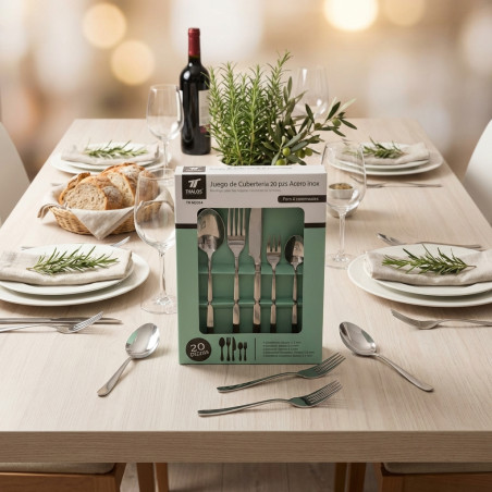 Sublimez vos repas à la maison avec notre service de couverts exclusif de 20 pièces en acier inoxydable . Conçu pour allier durabilité, fonctionnalité et une touche d'élégance professionnelle, ce service de couverts est l'accessoire idéal pour votre cuisine. Parfait au quotidien comme pour les grandes occasions, il vous garantit une performance exceptionnelle à chaque repas.