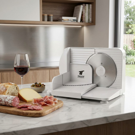 Trancheuse à viande électrique TH-CF151 : précision et polyvalence pour votre cuisine. Tranche charcuterie, fromages et saucisses avec une épaisseur réglable de 0 à 15 mm. Moteur de 180 W, lame en acier inoxydable, conception pliable et sécurisée. Facile à nettoyer et à ranger, idéale pour un usage quotidien.