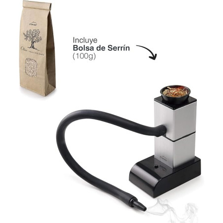 Le fumoir Magic Food Smoker est idéal pour fumer tous types d'aliments (viandes, poissons, fromages, etc.) et de cocktails. Il confère aux plats des arômes uniques et personnalisés, parfaits pour une présentation et une finition impeccables devant vos clients, qui ne manqueront pas de les émerveiller. Très facile et pratique à transporter. Ne passe pas au lave-vaisselle. Comprend un jeu de filtres de rechange et un sachet de copeaux de bois d'olivier (100 g). Compatible avec les cloches de fumage.