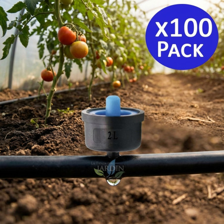 100 goutteurs de 2 litres/heure pour une irrigation turbulente. Recommandé pour les terrains sans dénivelés. Qualité maximale. Fabriqué en Italie. Amovible pour le nettoyage. Idéal pour être placé dans des endroits présentant des irrégularités puisque ce goutteur garantit le même débit d'eau. Il fonctionne avec une pression de 0,5 à 3,5 bars. Comprend une membrane nitrique pour résister aux produits chimiques. Corps en polypropylène. Filtration recommandée 120 mesh. Fabriqué par latiendadeljardin.com en orange ou violet (seule la teinture change).