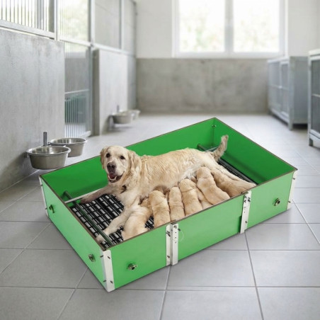 Litière pour chien 102x63x25 cm réalisée avec des matériaux antiseptiques, durables et confortables. Idéal pour assurer la sécurité et le confort de la mère et des chiots.