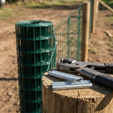 Agrafes de rechange robustes pour agrafeuses à clôture. Conçues pour un usage intensif et une fixation sécurisée des grillages et tissus en extérieur. Durabilité garantie.