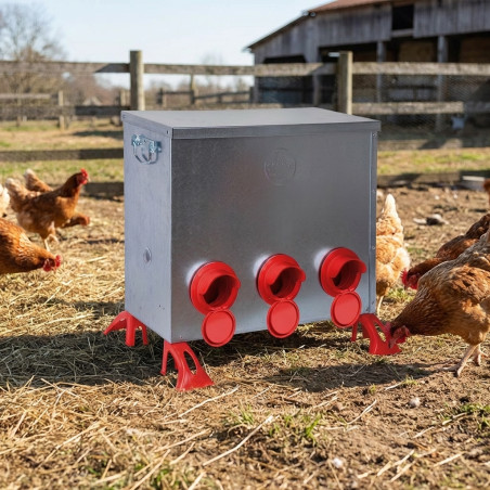 Optimisez l'alimentation de votre élevage avicole grâce à notre mangeoire métallique robuste de 80 kg , spécialement conçue pour une utilisation extérieure durable et efficace. Ce modèle haute capacité, référence 30084, garantit un approvisionnement constant en aliments pour vos volailles, tout en minimisant les pertes grâce à son système anti-gaspillage innovant et sa construction résistante aux intempéries.