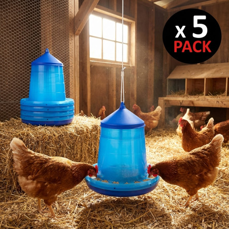C'est un récipient conçu pour nourrir les poules et autres oiseaux de manière efficace. Elle permet de stocker les aliments et de les distribuer progressivement dans le plateau, évitant ainsi le gaspillage et gardant la nourriture propre.