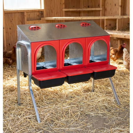 Jusqu'à 18 poules peuvent utiliser ce nid simultanément.