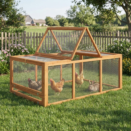 2 modelos a elegir. Parque para gallinas y conejos que permite el contacto directo con el suelo.