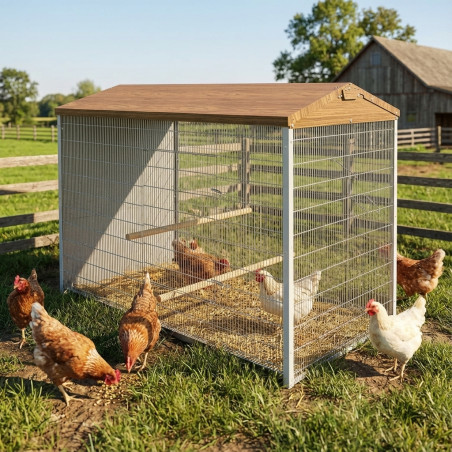 La adaptación de diferentes accesorios (nidos, ponederos, bebederos..) permite que éste parque tenga gran polivalencia de usos.