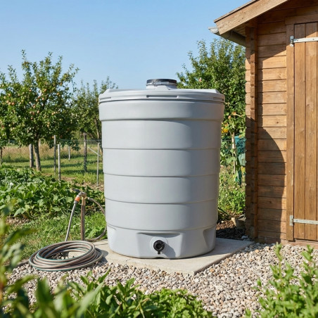 Réservoir d'eau potable Graf de 1000 litres, 109 x 140 cm, recommandé pour une utilisation intérieure et extérieure. Fabriqué en polyéthylène haute densité, opaque et de qualité alimentaire, il peut être installé à l'extérieur. Comprend le réservoir et son couvercle supérieur amovible. Accès par le haut : couvercle de ø 250 mm avec raccord fileté de 2 pouces et bouchon. Sortie par le bas : ø 75 mm avec adaptateur femelle de 2 pouces et bouchon de 2 pouces.