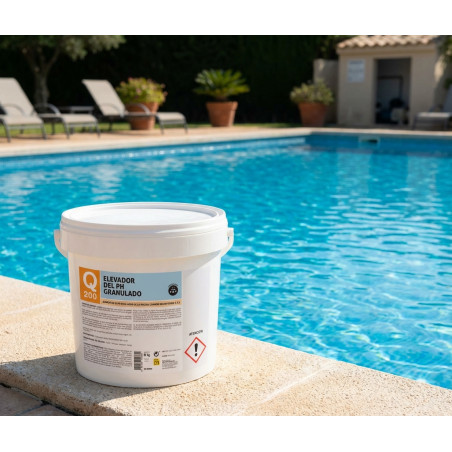 Correcteur de pH solide pour piscines , formulé pour augmenter et stabiliser le niveau de pH de l'eau.