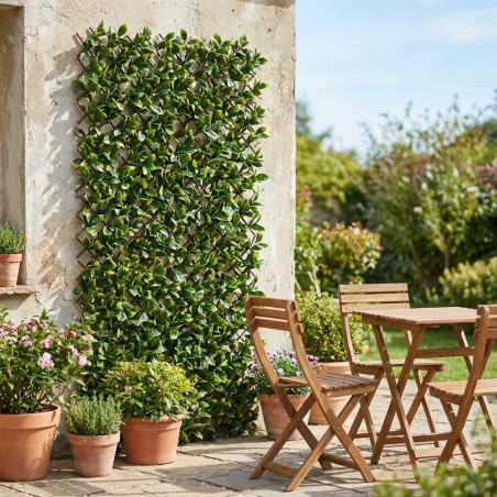 Treillis extensible avec tiges en osier naturel et feuilles de laurier synthétiques. Idéal pour décorer, créer des cloisons, des clôtures et créer des ambiances naturelles. Extensible jusqu'à 2 mètres et 1 mètre de haut. Haute qualité, avec protection UV, il offre une plus grande résistance et une couleur durable. Fabriqué en Espagne.