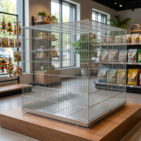 Cage pour exposition de perroquets ou autres oiseaux, avec porte. 98x95x101 cm. Produit fabriqué en Espagne. Matériel de haute qualité.