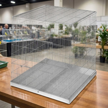 Cage pour exposition de perroquets ou autres oiseaux, avec porte.