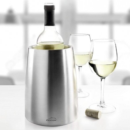 Made of high quality 18/10 stainless steel. Ideal for home and professional use. Double insulated wall; insulates wine or champagne from ambient temperature and keeps it cold for longer without the need for ice or water. It is not necessary to put the chiller in the freezer beforehand. Fits most red, white or champagne wine bottles. Dimensions: 10.5 (cm) / 19.5 h (cm). Capacity: 1.5 l. It is very easy to clean.