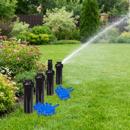 Ideale per giardini residenziali e aree di piccole e medie dimensioni, questo kit da 4 pezzi offre la copertura necessaria per affrontare le complessità del vostro progetto paesaggistico. La durata e la resistenza dei materiali Rain Bird garantiscono prestazioni costanti nel tempo, anche in condizioni meteorologiche difficili.