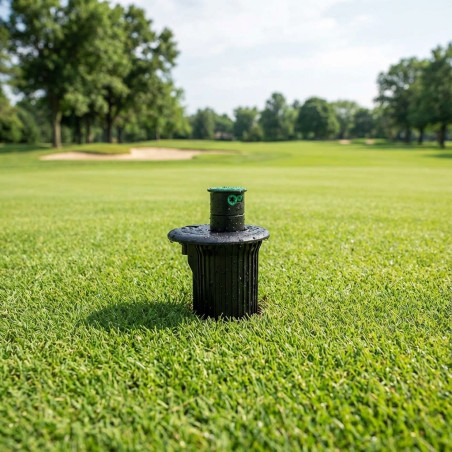 Irrigatore 1 con una portata da 11,9 a 19,8 me un angolo di irrigazione di 360º. Destinato a campi sportivi e grandi spazi verdi.