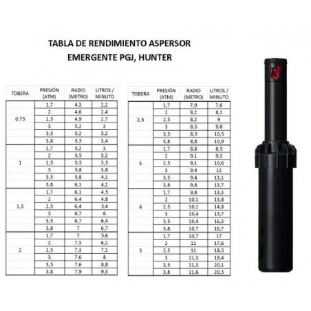 L' irrigatore per irrigazione Hunter PGJ-04 è una soluzione versatile ed efficiente per gli impianti di irrigazione di giardini residenziali, prati e aree verdi di medie dimensioni. Progettato per offrire prestazioni affidabili e modulabili, questo irrigatore consente una copertura irrigua compresa tra 4,3 e 11,6 metri , adattandosi alle esigenze specifiche del tuo spazio verde.