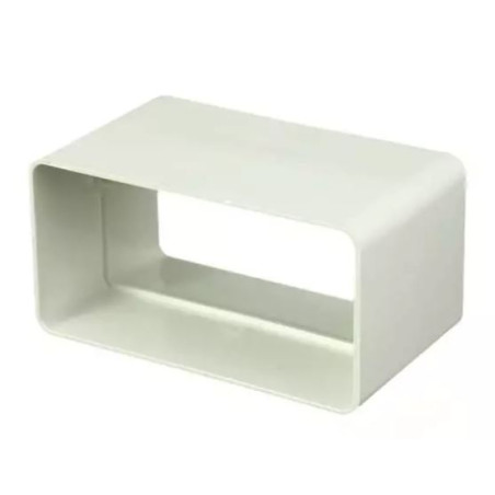 Giunto Rettangolare 55x110mm per Aeratore Estraente | Connessione Ignifuga | Resistente all'Umidità e Alta Temperatura Caratteristiche del Prodotto: Alta Qualità e Sicurezza : Giunto rettangolare 55x110mm realizzato con materiale ignifugo e autoestinguibile, resistente fino a 80ºC, garantendo la massima protezione. Montaggio Facile : Assemblaggio rapido e semplice con design maschio-femmina, che consente una rapida installazione in qualsiasi ambiente. Migliore Performance : Offrendo una performance superiore rispetto ai condotti flessibili tradizionali, riduce le perdite di carico grazie alla sua parete interna liscia. Versatilità : Ideale per sistemi di ventilazione ed estrazione, adattabile a diversi ambienti e compatibile con sistemi di fissaggio rettangolari e circolari. Resistente all'Umidità : Nessun rischio di deterioramento a causa dell'umidità, garantendo una lunga durata e affidabilità in ambienti con condizioni mutevoli. Dimensioni - Larghezza: 11 cm, Profondità: 3,9 cm, Altezza: 5,5 cm