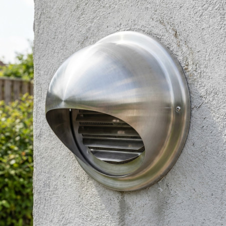 Griglia di ventilazione rotonda fissa, Ø100 mm, in acciaio inox. Migliora il flusso d'aria e impedisce l'ingresso di sporco e insetti. Resistente, resistente alla corrosione e facile da installare.