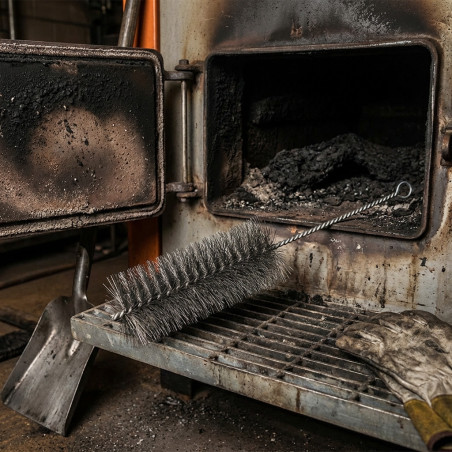Spazzola professionale in acciaio inox per caldaie e camini per una pulizia profonda. Rimuove efficacemente fuliggine e creosoto, garantendo sicurezza ed efficienza. La sua lunghezza di 1 metro e la spazzola da 13x8 cm raggiungono anche le zone più difficili, garantendo una manutenzione ottimale.