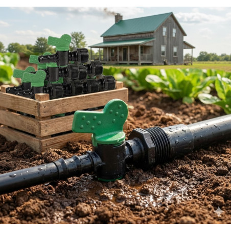 Valvola di passaggio per irrigazione a goccia. Misura 16 mm x 3/4. Valvola bypass utilizzata per collegare direttamente il tubo da 16 mm ad una filettatura maschio da 3/4. Accessorio per l'irrigazione a goccia prodotto in Italia, di altissima qualità. Confezione da 50 unità.