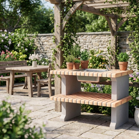 Ottimizza il tuo giardino: questo modulo è il punto di partenza perfetto per creare una cucina da esterno personalizzata. Il suo ampio piano di lavoro ti consente di tenere tutti gli utensili e il cibo a portata di mano, mentre la robusta base è pronta per ospitare la tua griglia o barbecue da incasso preferita (non inclusa). Migliora le tue esperienze all'aperto con un investimento in qualità e funzionalità.