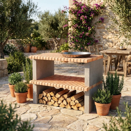 Trasforma il tuo spazio esterno in un luogo di ritrovo e delizie culinarie con il nostro esclusivo modulo barbecue integrato Paella, progettato con cura per offrire funzionalità e robustezza, abbinate a un'estetica rustica ma elegante. Questa postazione di cottura per esterni, con le sue dimensioni compatte ma efficienti di 120x80x80 cm, integra perfettamente un'area grill e un comodo lavello, consentendoti di cucinare, preparare e pulire tutto in un unico posto. Ideale per gli amanti della paella e del barbecue tradizionale, questo modulo diventa il cuore del tuo giardino o patio.