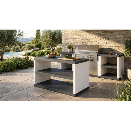 Piano di lavoro Kitaway per barbecue a incasso (84x63x85 cm). Base robusta ed elegante bicolore (bianco/nero), ideale per ottimizzare lo spazio della tua cucina all'aperto e la preparazione dei cibi all'esterno.