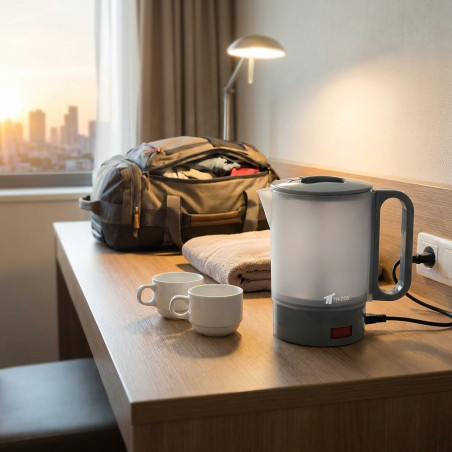 Ideale per chi è in viaggio, questa caraffa con cavo integrato, custodia in plastica resistente alle alte temperature, offre una resistenza nascosta in acciaio inossidabile, spia luminosa e protezione contro il surriscaldamento.