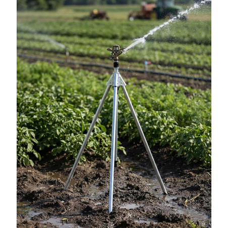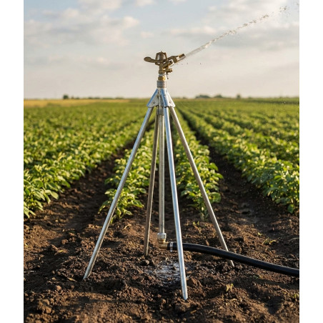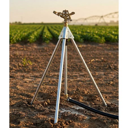 Questo supporto per treppiede per irrigatore per irrigazione maschio da 3/4 è ideale per l'uso in impianti di irrigazione agricola. Realizzato in acciaio di altissima qualità, ha un'altezza fissa di 70 cm e una filettatura maschio da 3/4, garantendo un'installazione sicura e duratura.